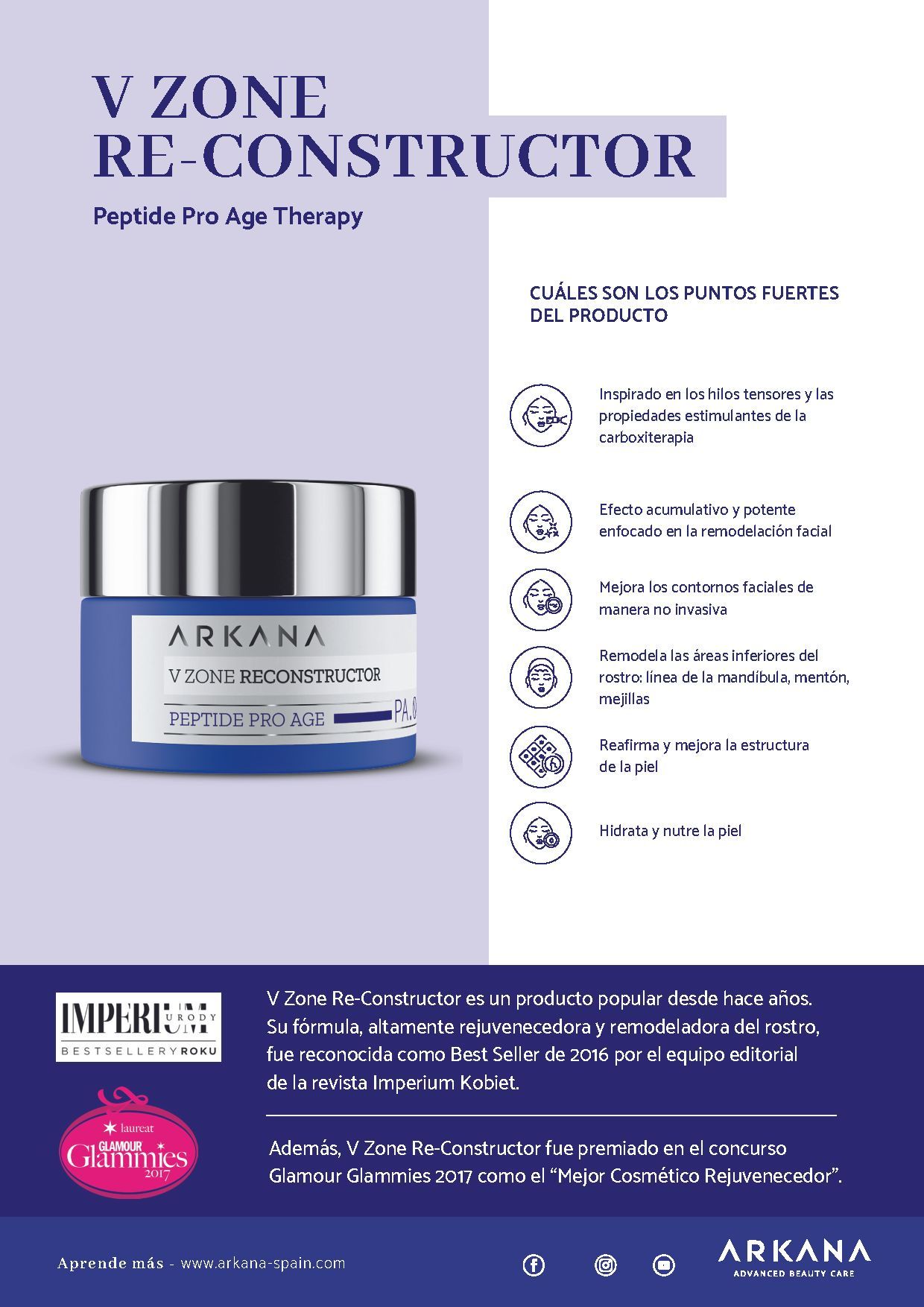 Además, V Zone Re-Constructor fue premiado en el concurso Glamour Glammies 2017 como el “Mejor Cosmético Rejuvenecedor”.